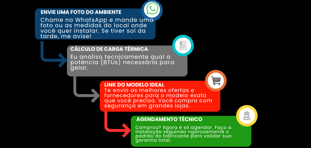Muitas pessoas compram ar-condicionado olhando apenas o preço ou a estética, e acabam com um aparelho que consome muita energia ou não gela o ambiente. Como especialista técnico em instalação e manutenção, eu conheço as máquinas "por dentro". Por isso, ofereço uma Consultoria de Compra Personalizada.